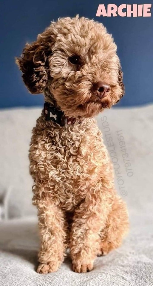 Chocolate Sable Toy Poodle stud dog, Kennel Club registered and health tested. He is 10 inches tall at the shoulder.