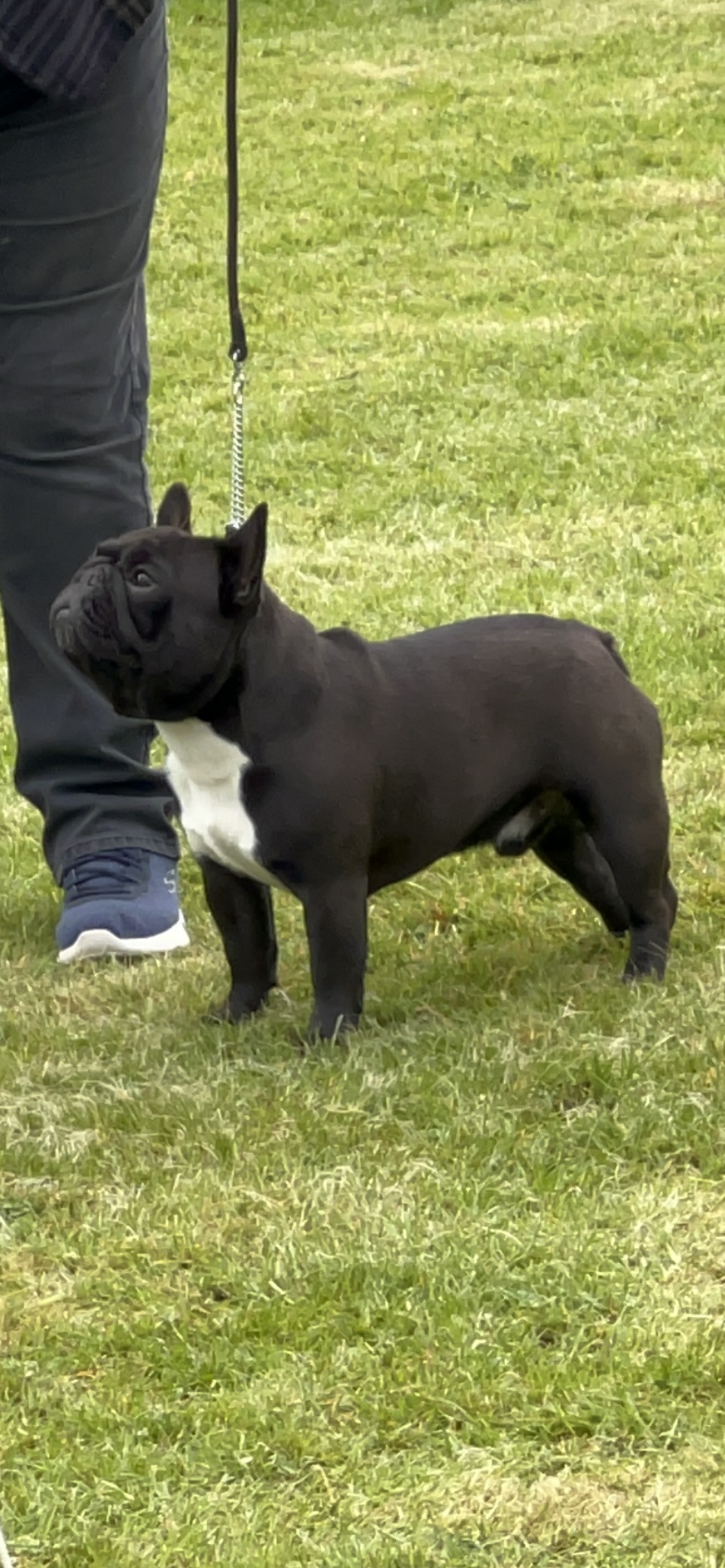 Bollinger Has Been shown Very Lightly , His first ever show he took first place to our delight under the Renowned Championship Show judge and Crufts expert of Excellence Mr Frank Cane ..