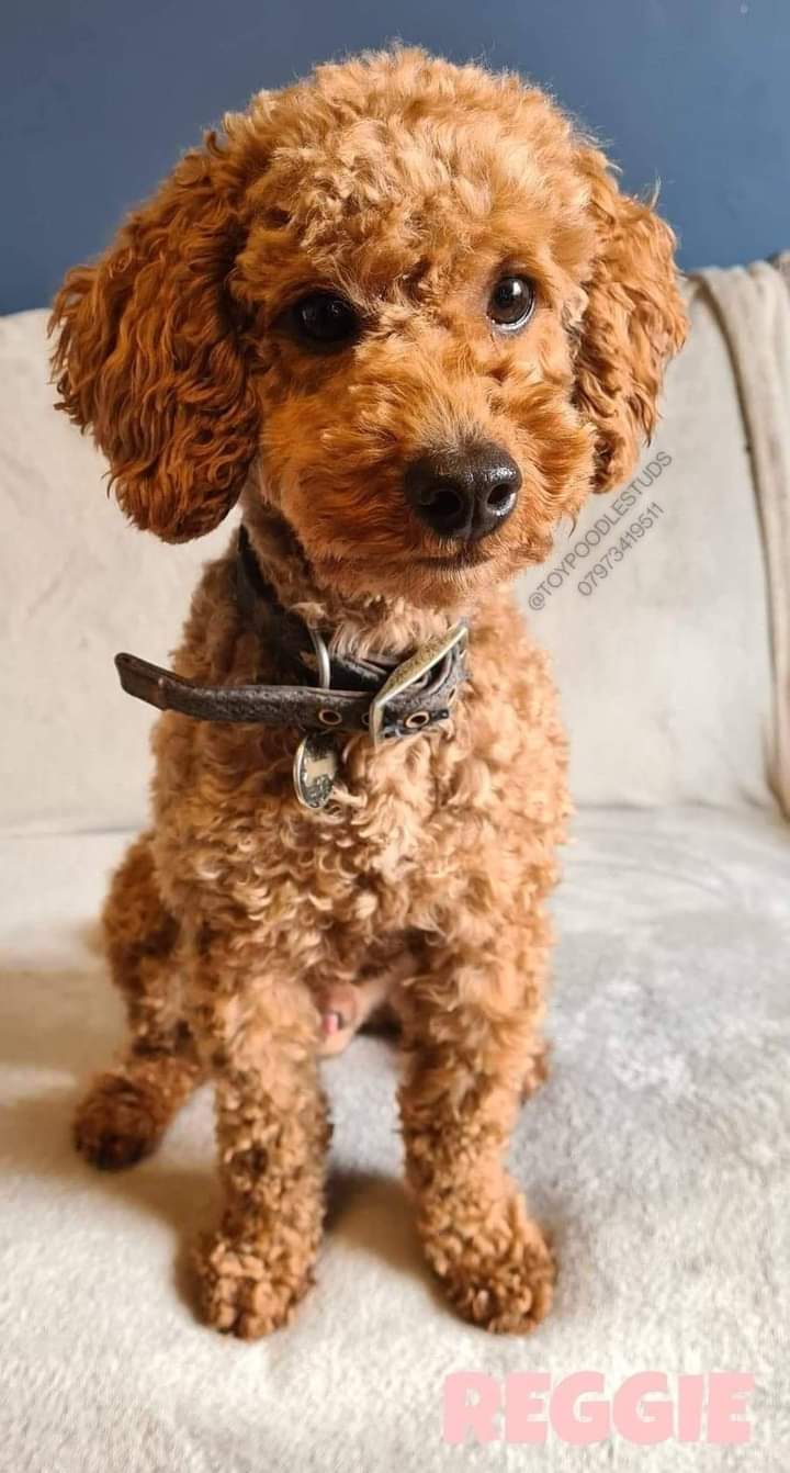 Proven Red Toy Poodle stud dog, Kennel Club registered and PRA clear as well as five other health tests, listed below. He is 10 inches tall at the shoulder.